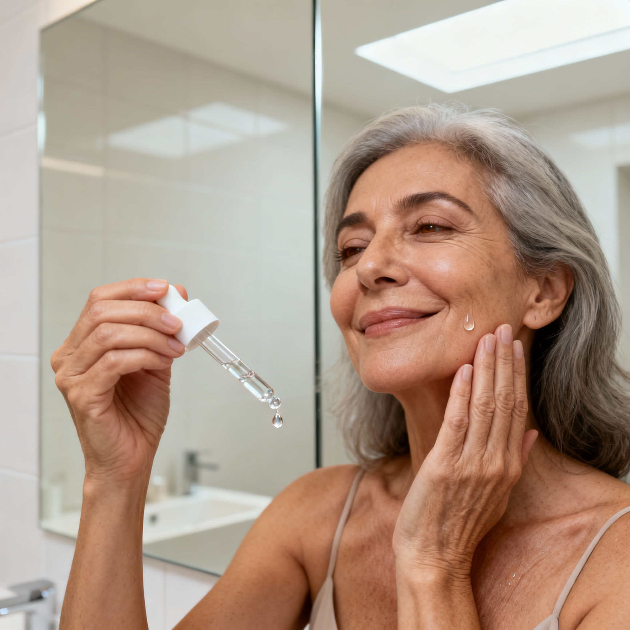 Aplica 3–5 gotas sobre la piel limpia y ligeramente húmeda en rostro, cuello y escote, con un suave masaje.